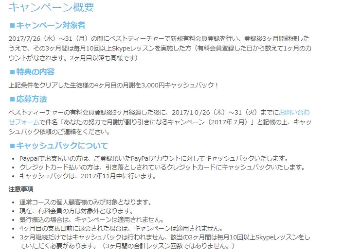 ベストティーチャーでは、新しいことにチャレンジしようとする方を応援するために、期間限定の「キャッシュバックキャンペーン」を実施しています。