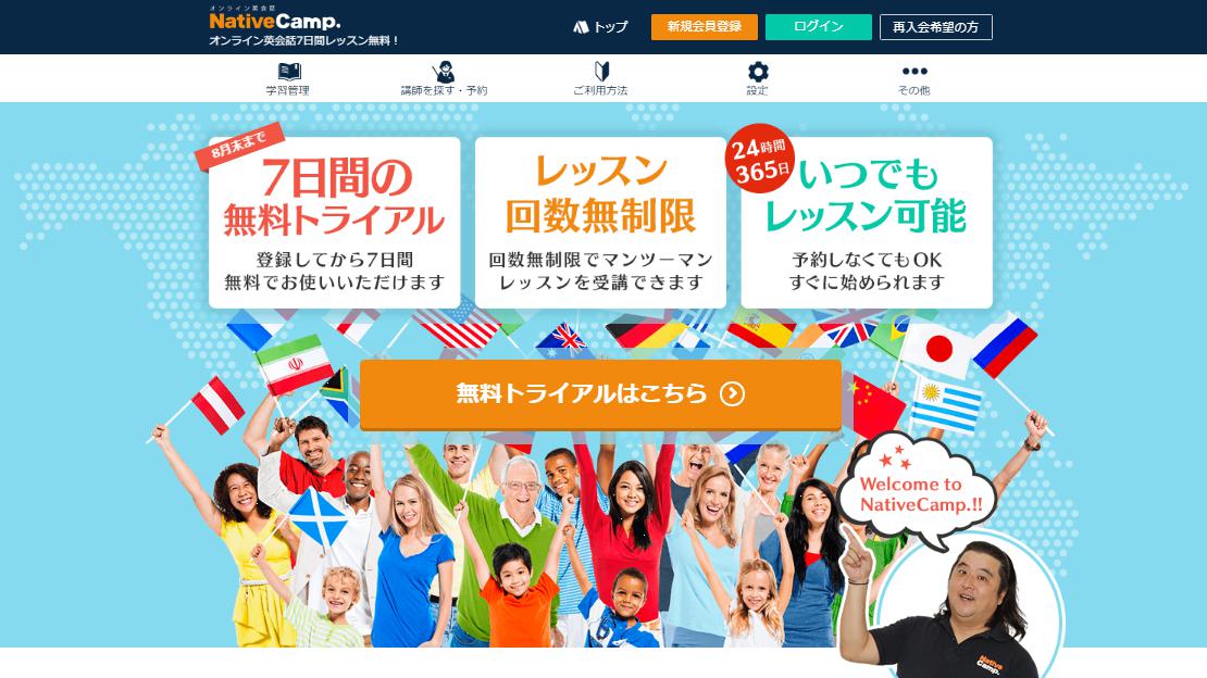 ネイティブキャンプの「無料体験」はこちら↓↓↓