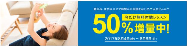無料体験レッスン50%増量キャンペーンは8月6日(日)まで