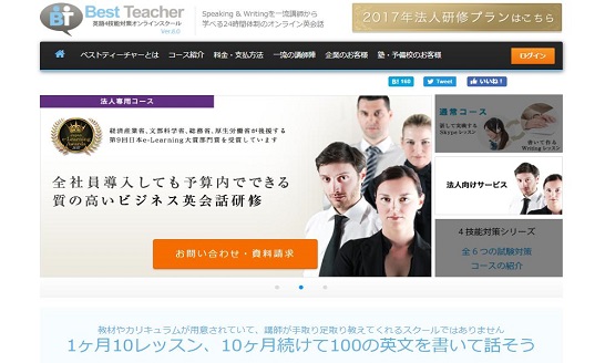 ベストティーチャーは、日本最大級の4技能対策(読む・書く・聞く・話す)オンライン英会話スクールです。ネイティブを中心に世界50カ国以上から選抜された一流の講師陣を揃え、24時間いつでも高品質なレッスンを受ける事が可能です。