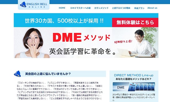 イングリッシュベルは、2008年5月のサービス開始と共に、日本で初めてカランメソッドをオンライン英会話に導入したスクールです。また、カランメソッドに加え、進化版とも言える「DMEメソッド」を学べるスクールとしても評判です。